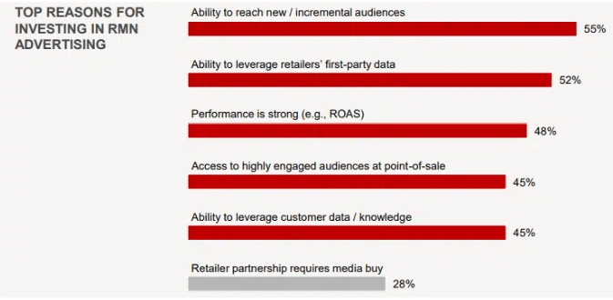 RMN 的其中一個最大優點便是可衡量業績的表現。由於 RMN 廣告貼近消費者的消費場景,並且在一個封閉型的廣告環境中進行,不同於社群媒體廣告和多媒體廣告,後者的版位和效果往往難以逐一評估。RMN 的可衡量性讓行銷長逐年增加對 RMN 的投資比重。