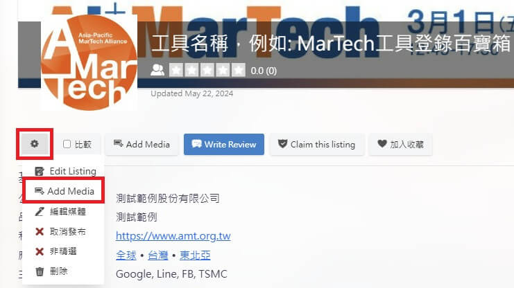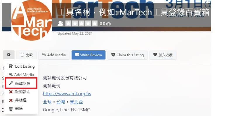 點擊「提交」即可完成MarTech服務登錄的申請,並可立即發布到前台瞜!