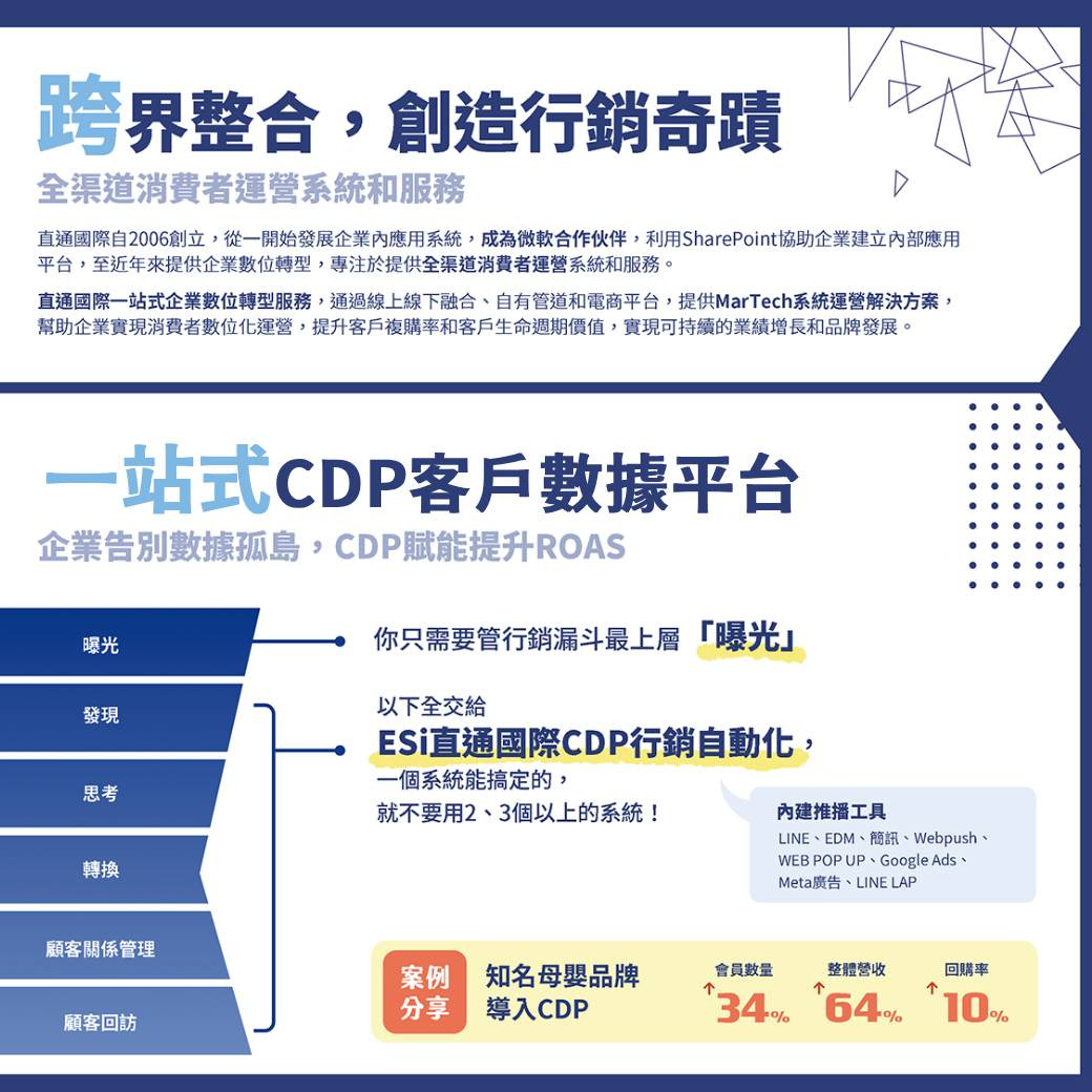 ESi直通國際自2006年創立,是台灣專注在MarTech的領導廠商,擁有台灣最接地氣自行研發的CDP和AIM(LINE)行銷解決方案。