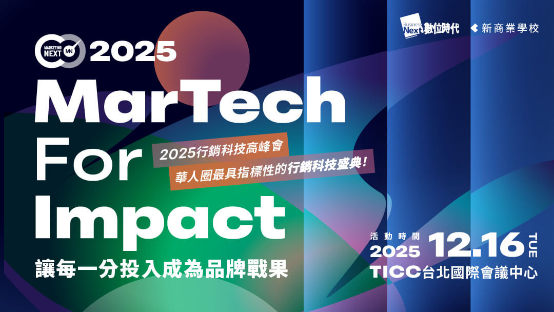 《數位時代》連續 7 年,深獲業界矚目的《MarTech行銷科技高峰會》每年深度解密行銷科技的風口議題,帶領行銷人打造自己的戰力圖譜,讓 MarTech 投入不再是成本,而是倍增 ROI 的營收加速器!
